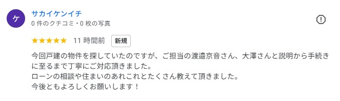 グーグルレビューをいただきました!