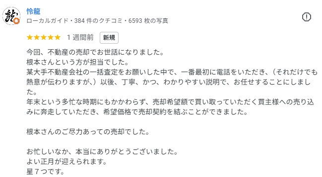 グーグルレビューをいただきました!