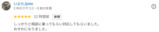 グーグルレビューをいただきました!