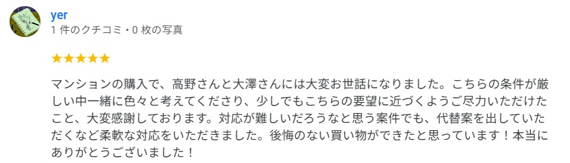 グーグルレビューをいただきました!