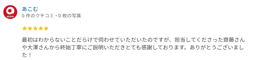 グーグルレビューをいただきました!